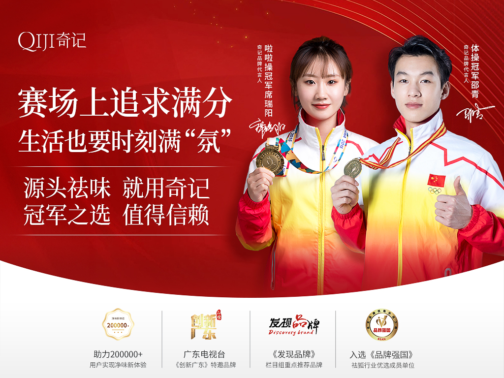 为了助力品牌影响力的全面提升,激发更强大的创造力,奇记净味正式签约两大冠军代言人,分别是啦啦操冠军席瑞阳以及体操冠军-邵青。 此次与两位冠军合作,是为了向更多人传达关于健康清爽生活的重要性,为我们未来的发展也注入了更多动力与活力。
