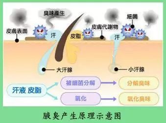 腋下异味产生的根本原因是由于大汗腺分泌异常旺盛加上分泌物被皮肤表层细菌分解产生难闻的臭味,只有从根源上解决才能真正改善腋下异味问题。